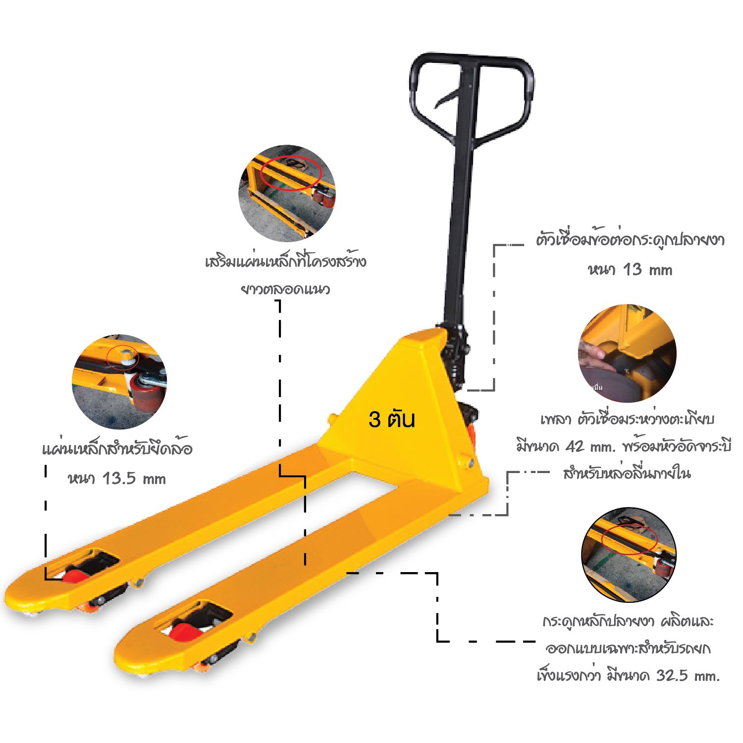 รถแฮนด์พาเลท Happy Move ใช้งานง่ายสบาย มือจับออกแบบตามสรีระผู้ใช้งาน แข็งแรงด้วยปั๋มไฮดรอลิคคุณภาพสูง ทนทาน ปั๊มไฮดรอลิกใช้ซีลจากประเทศเยอรมัน นุ่มนวล ด้วยระบบปล่อยน้ำหนัก Anti Impact
